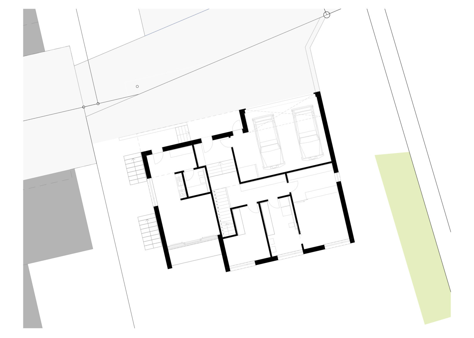 Das Haus „A“ musste aufgrund des Gestaltungsplans und der Wünsche der Bauherren in ein bereits bebautes Konglomerat von Häusern eingefügt werden.